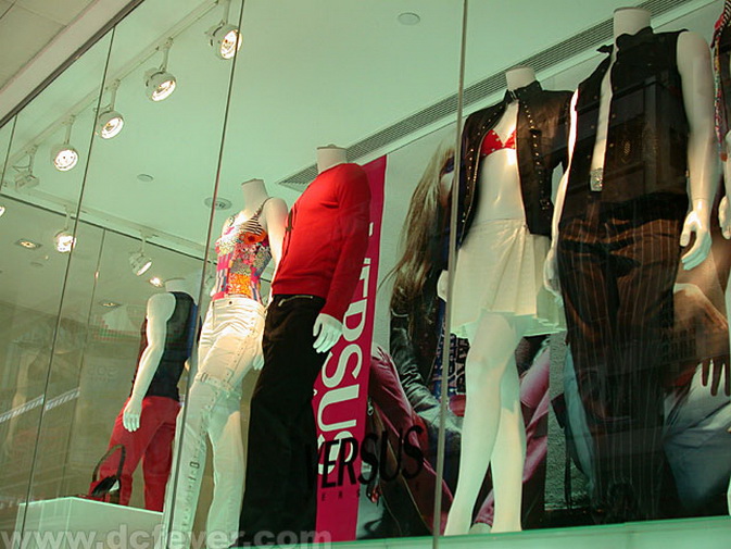 未加上偏光鏡前,櫥窗玻璃上呈現(xiàn)著大量街道的反映。