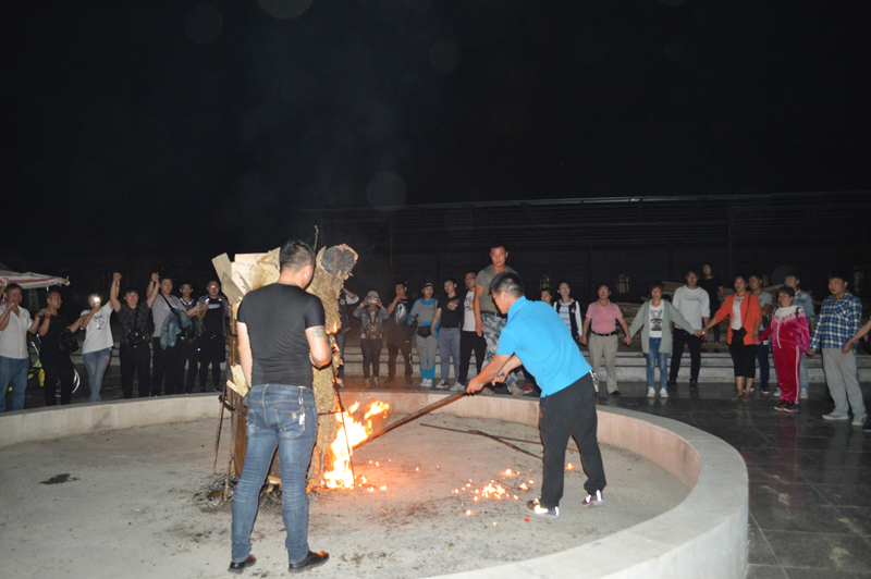 晚飯過(guò)后,大家集合到篝火臺(tái),我們總經(jīng)理“林新峰”先生,堅(jiān)定地點(diǎn)燃了柴堆,隨后一股明亮的火焰騰空而起,人群爆發(fā)出一陣歡呼聲?;鹧嬖饺荚酵褚黄ケ捡Y的駿馬,又像迎風(fēng)飛舞的鳳凰。