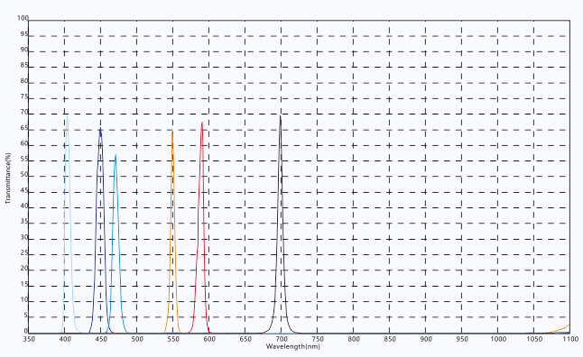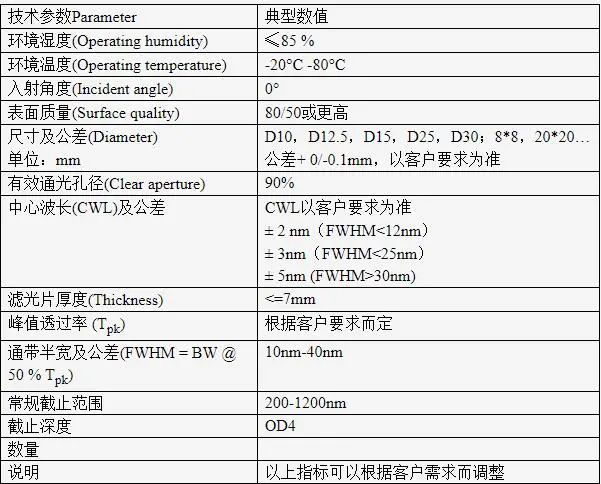 也就是這種濾光片在特定的波段允許光信號通過,而偏離這個波段以外的兩側光信號被阻止,窄帶濾光片的通帶相對來說比較窄,