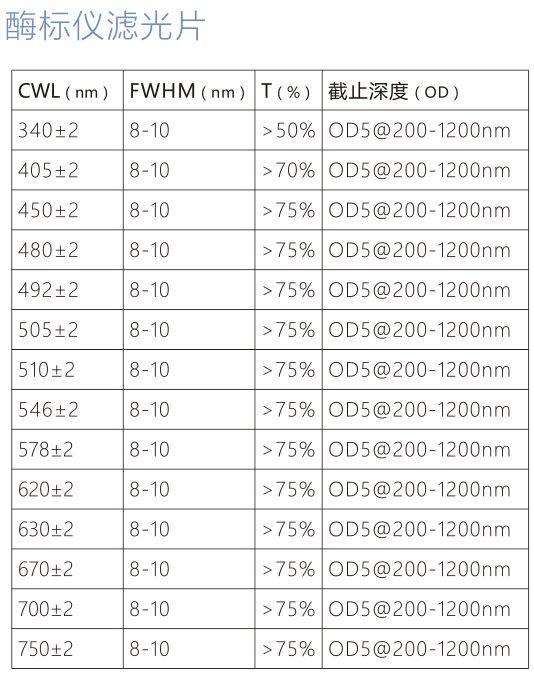酶標儀窄帶濾光片 激埃特光電生產(chǎn)的,酶標儀干涉片采用高穩(wěn)定度窄帶介子膜技術,中心波長定位精度高,且透射比高,