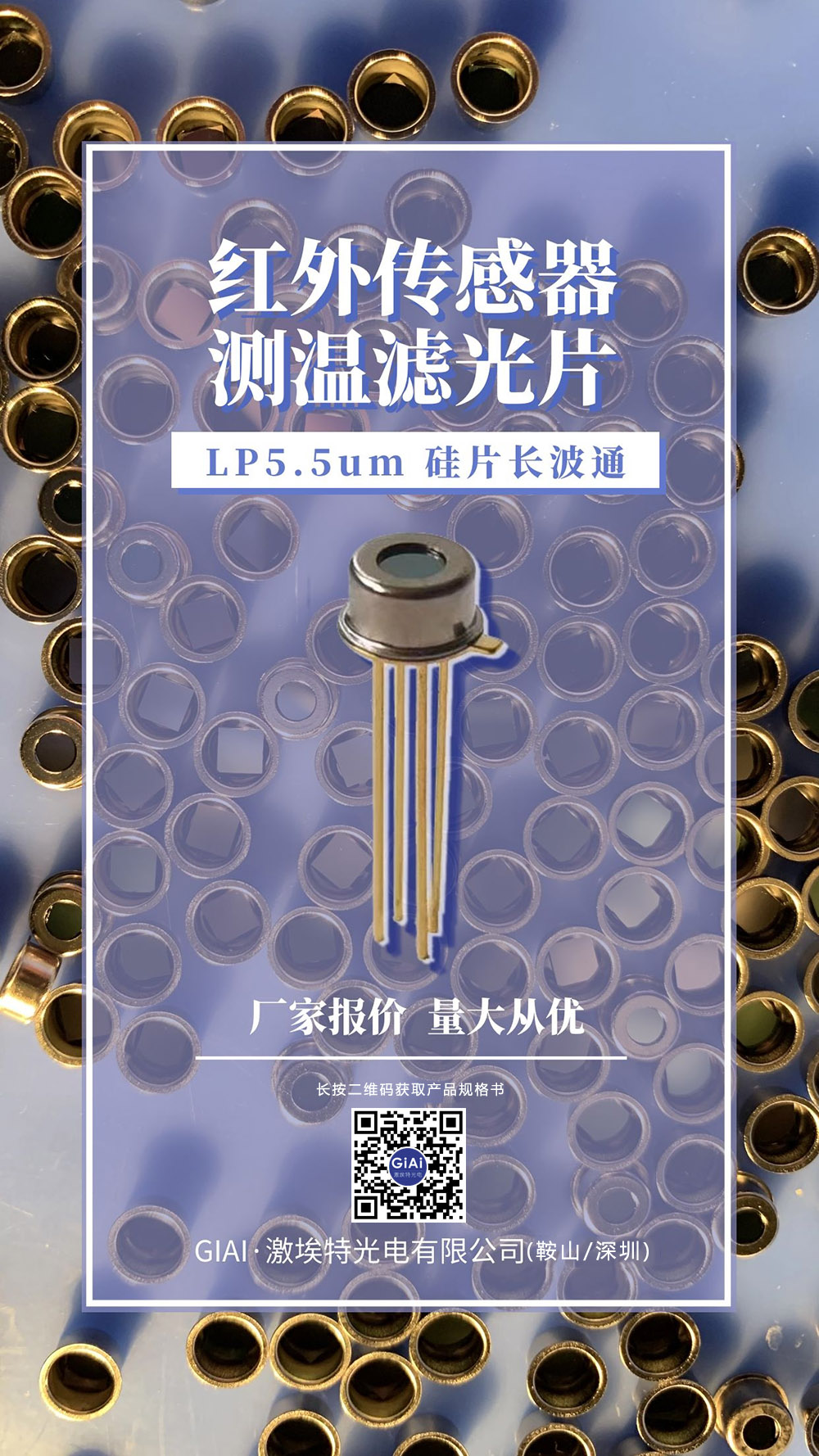 “鞍山激埃特光電”提供紅外濾光片+TO管帽,成立濾光片切割和點膠封裝的生產(chǎn)線。 額溫槍熱電堆傳感器用, TO4