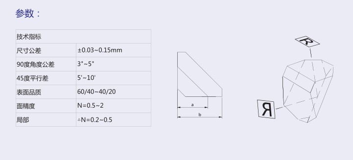 產(chǎn)品介紹: 屋脊棱鏡能同時反轉(zhuǎn)和翻轉(zhuǎn)圖像,同時可將光路轉(zhuǎn)折90度,在光學(xué)系統(tǒng)中重要的應(yīng)用。 一般被用于既要光束